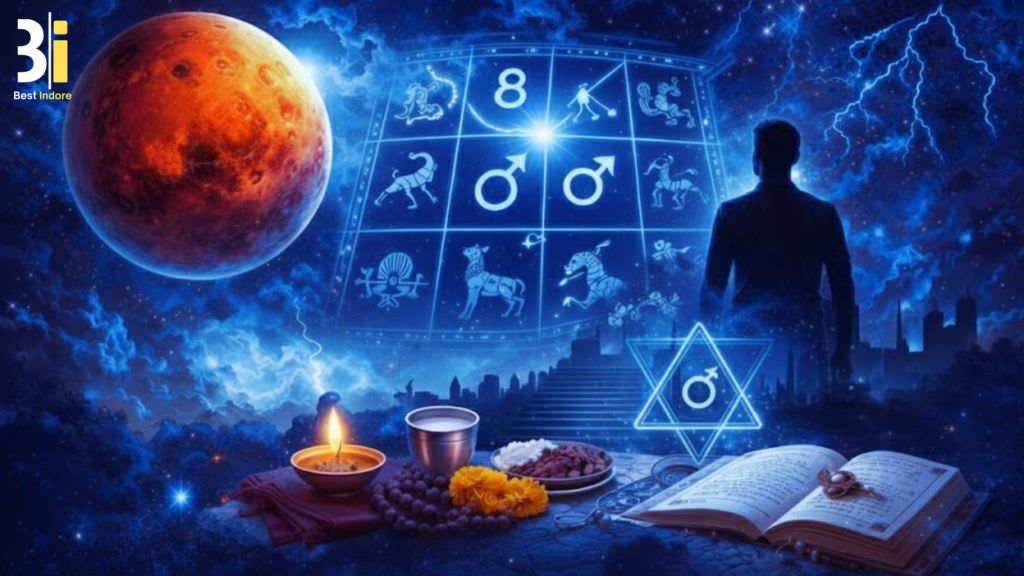 In Vedic astrology, Mars (Mangal) is the planet of energy, courage, aggression, discipline, action, and survival instincts. The 8th house is one of the most mysterious and powerful houses in a horoscope, governing transformation, sudden events, longevity, hidden knowledge, accidents, inheritance, occult sciences, and deep karmic changes.